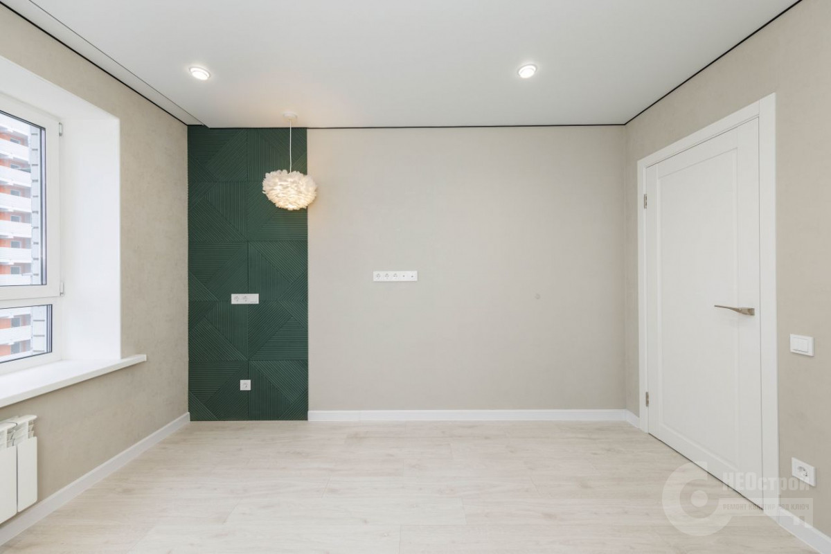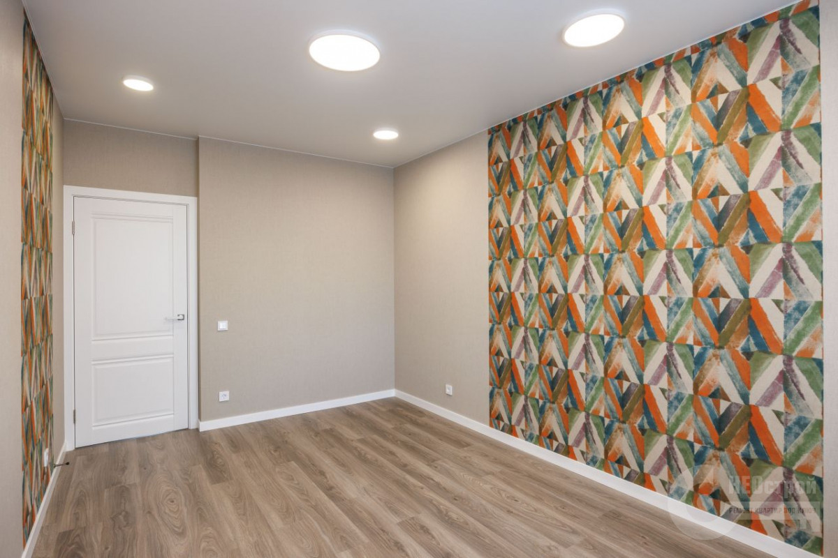 - Высококачественная оклейка стен метровыми обоями премиального качества на флизелиновой основе (широкий спектр тонов с возможностью сочетания для зонирования пространства)