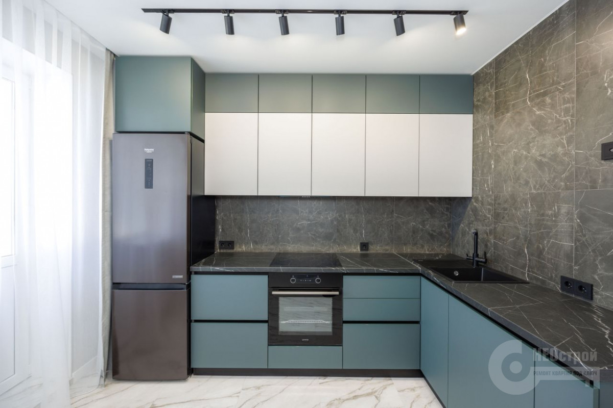 - Облицовка рабочего фартука на кухне крупноформатной керамической плитой 60х120 до 6 м2 с возможностью подбора цвета и фактуры