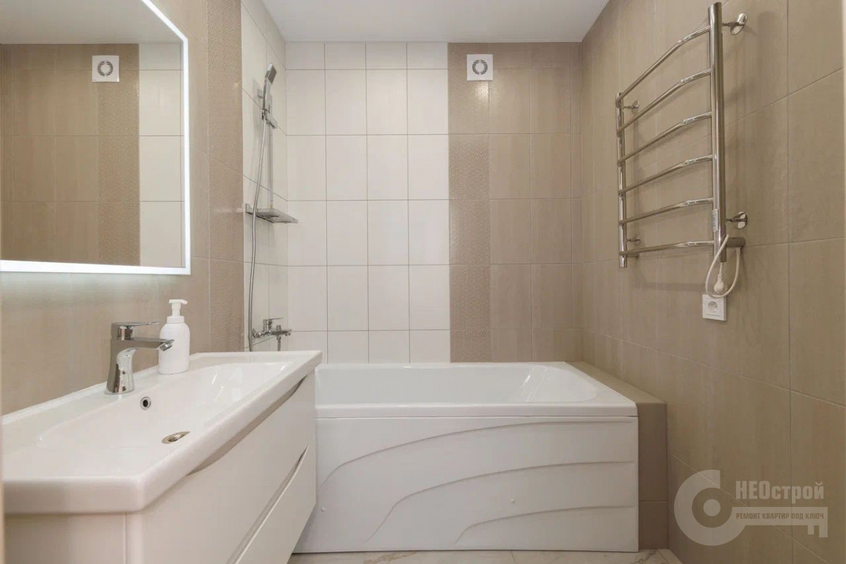 - Установка полотенцесушителя скрытого монтажа, зеркала и вытяжного вентилятора в ванной комнате.